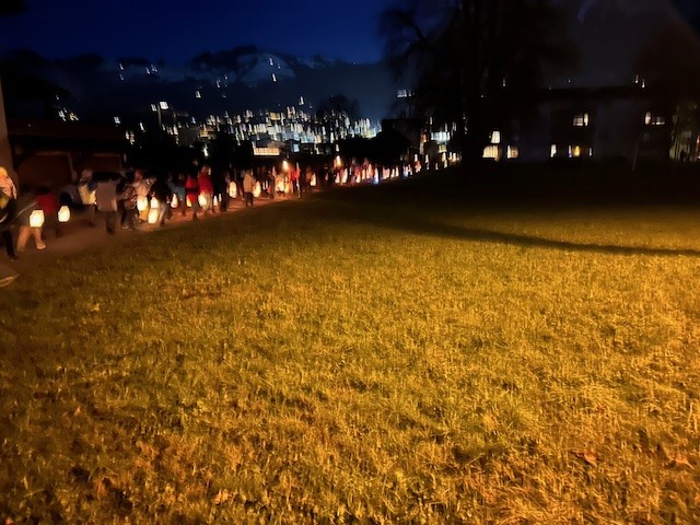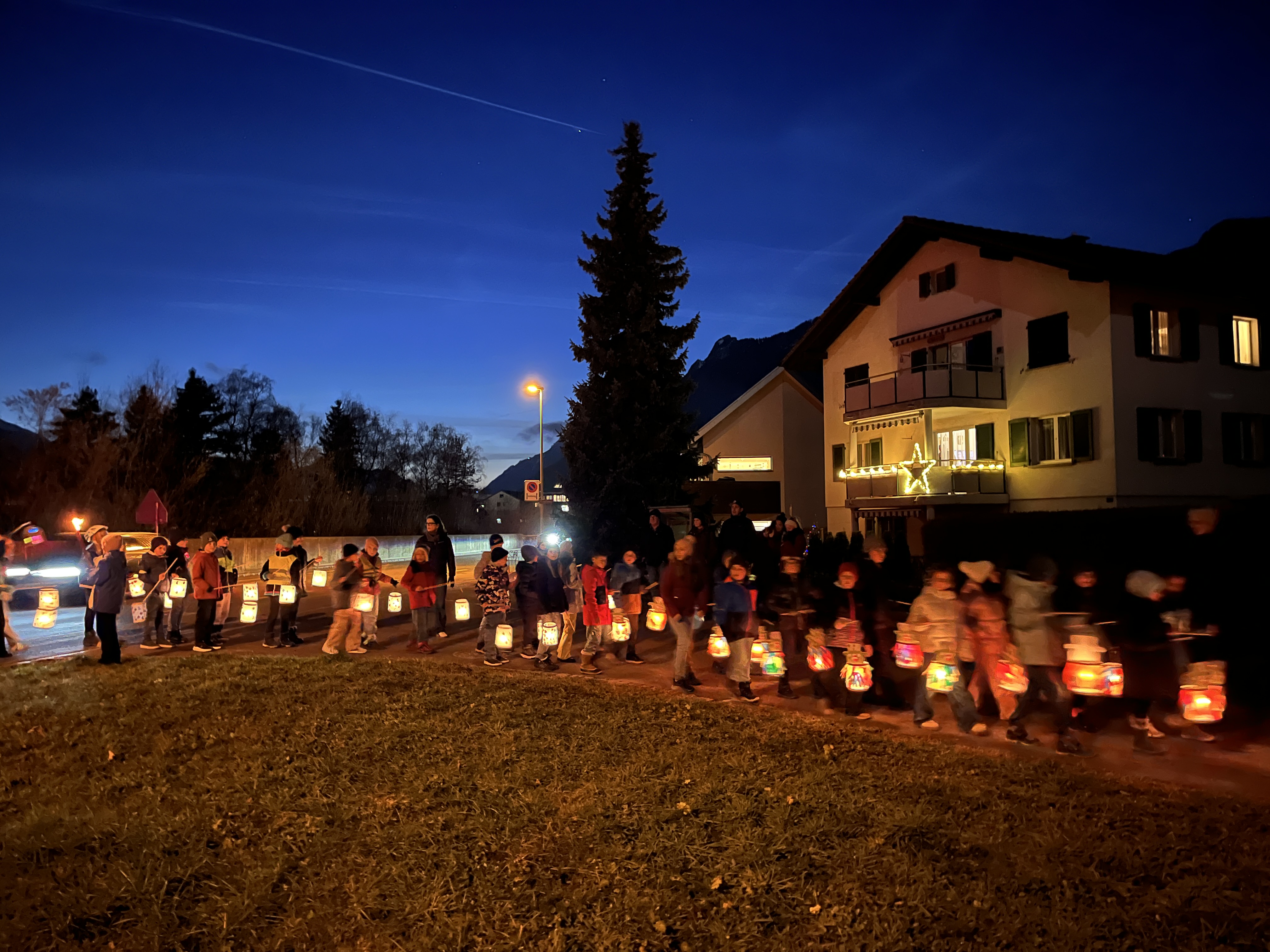 Um 17.15 Uhr versammelten sich die Kindergarten- bis 4.-Klässler und kurz darauf setzte sich der Laternenzug in Bewegung: Der Weg führte über das Muotaschulhaus, das Studengässli und die alte Gasse.