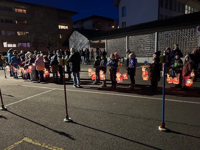 Auf dem Pausenplatz warteten bereits Eltern und Dorfbewohner auf den feierlichen Einzug. Zum Abschluss genossen alle Punsch und feine Guetzli in gemütlicher Atmosphäre – begleitet vom wärmenden Feuer. Ein herzliches Dankeschön an alle Helferinnen und Helfer, die beim Rüsten, Aufstellen und Feuer machen tatkräftig unterstützt haben!
